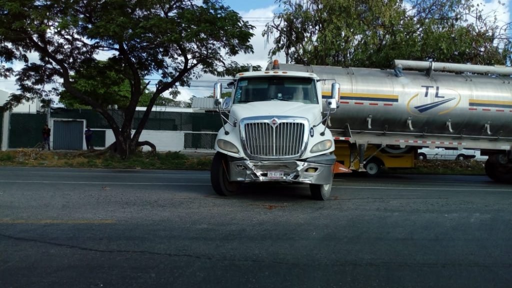 Mérida, Yucatán.- Un tráiler, con dos remolques tipo salchicha, colisonó a un transporte colectivo de pasajeros en la carretera Mérida-Umán.