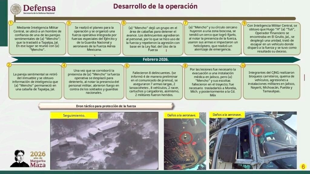 “El 20 de febrero, mediante trabajos de inteligencia militar central, se ubicó a un hombre de confianza de una de las parejas sentimentales de ‘El Mencho’, que la trasladó a una instalación en el poblado de Tapalpa…”, reveló el comandante.