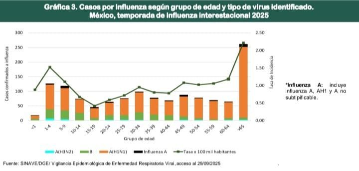 Mérida, Yucatán.- La temporada de influenza interestacional 2025, del 4 de mayo hasta hoy, concluye con un brote epidémico en Yucatán, al confirmarse 59 casos en las últimas dos semanas, la cifra más alta en lo que va del año, reveló la Dirección General de Epidemiología de la Secretaría de Salud federal.