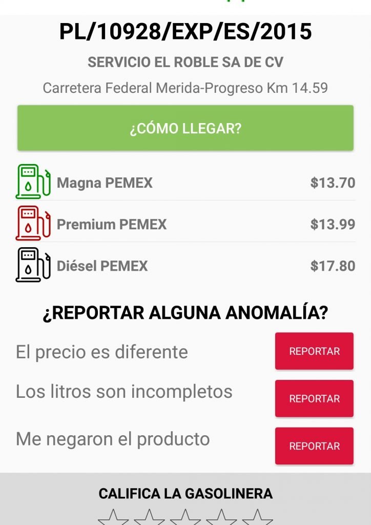 Según Gassoapp, la aplicación móvil de la Comisión Reguladora de Energía (CRE), en las estaciones El Roble, los precios de hoy son: