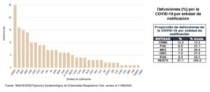 Con excepción de Campeche, en todos los estados hay decesos por Covid-19. La semana pasada fueron 16 casos, de los cuales tres fueron de Quintana Roo y dos de Yucatán.