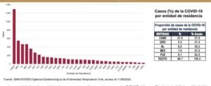 De ese total, la Ciudad de México, con mil 295 contagiados, el 21.9 por ciento, seguido de Querétaro, con 551 infectados, el 9.3 por ciento, y Nuevo León, con 470 enfermos, el ocho porcentual.
