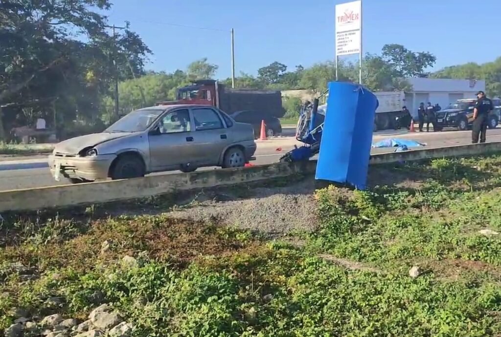 Mérida, Yucatán.- Una mujer de la tercera edad perdió la vida en la carrera federal Mérida a Campeche, luego de que el mototaxi en que viajaba registró un accidente en el que se vieron involucrados una camioneta y un compacto.